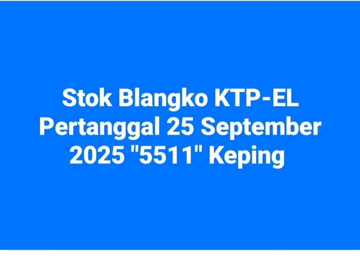 BERIKUT STOK BLANGKO KTP EL, KAMIS 25 SEPTEMBER 2025